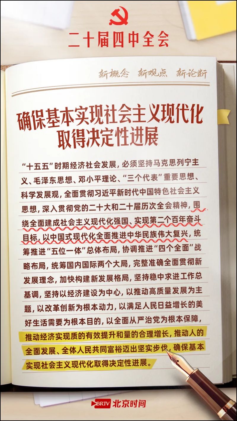 10月23日,黨的二十屆四中全會(huì)公報(bào)重磅發(fā)布,為“十五五”時(shí)期發(fā)展錨定航向,更向2035年基本實(shí)現(xiàn)社會(huì)主義現(xiàn)代化目標(biāo)吹響號(hào)角。公報(bào)中提出了哪些新概念、新觀點(diǎn)、新論斷?“十五五”時(shí)期我國(guó)經(jīng)濟(jì)社會(huì)發(fā)展有哪些主要目標(biāo)?收藏這份學(xué)習(xí)筆記,錨定目標(biāo),努力奮斗!