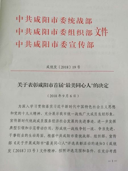 陜西省農(nóng)業(yè)機(jī)械研究所副總工程師、質(zhì)檢總站副站長、高級工程師曹京蘭同志榮獲咸陽市首屆“最美同心人”榮譽(yù)稱號。