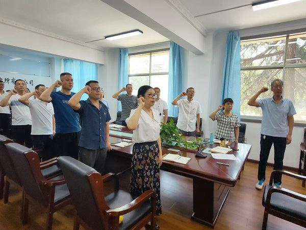 大會(huì)在雄壯的《國(guó)歌》聲中拉開序幕。在黨委書記寇德萬的領(lǐng)誓下,全體黨員一同宣誓,重溫入黨誓詞。面對(duì)鮮紅的黨旗,全體黨員共同高舉右拳,神情莊重、精神飽滿、聲音鏗鏘、句句千鈞,每位黨員再一次接受了心靈的洗禮,進(jìn)一步堅(jiān)定了立場(chǎng)信念和初心使命,增強(qiáng)了砥礪前行再出發(fā)的勇氣。