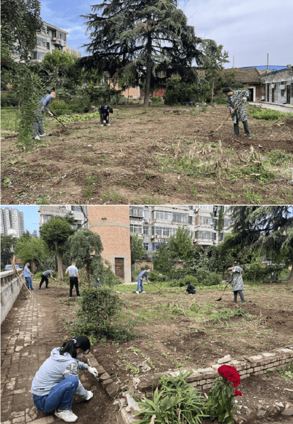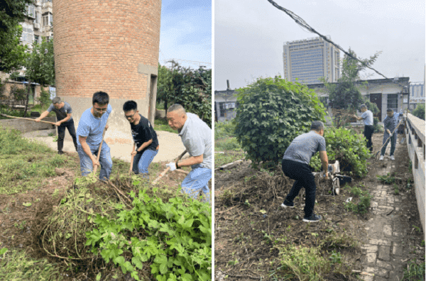 活動(dòng)中,黨員職工紛紛拿起鋤頭、鐵鍬等工具,撿拾、清理三臺(tái)科研試驗(yàn)田兩邊的垃圾、雜草,并對(duì)單身宿舍屋前雜草進(jìn)行了清理,經(jīng)過2個(gè)多小時(shí)的分工協(xié)作,環(huán)境衛(wèi)生煥然一新。