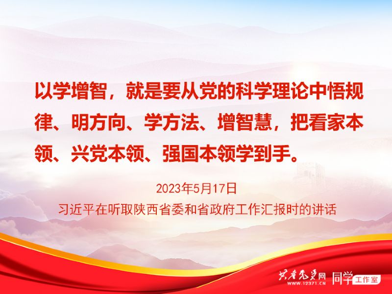 2023年5月17日,習(xí)近平總書記在聽取陜西省委和省政府工作匯報(bào)時(shí)指出,學(xué)習(xí)貫徹新時(shí)代中國(guó)特色社會(huì)主義思想主題教育正在全黨深入開展,各級(jí)黨組織務(wù)必在深入、扎實(shí)上下功夫,在以學(xué)鑄魂、以學(xué)增智、以學(xué)正風(fēng)、以學(xué)促干上見實(shí)效。