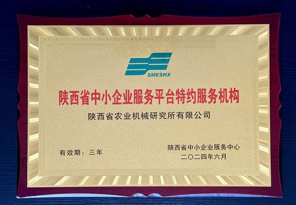 陜西省農(nóng)業(yè)機(jī)械研究所有限公司成功獲批陜西省中小企業(yè)服務(wù)平臺(tái)特約服務(wù)機(jī)構(gòu)