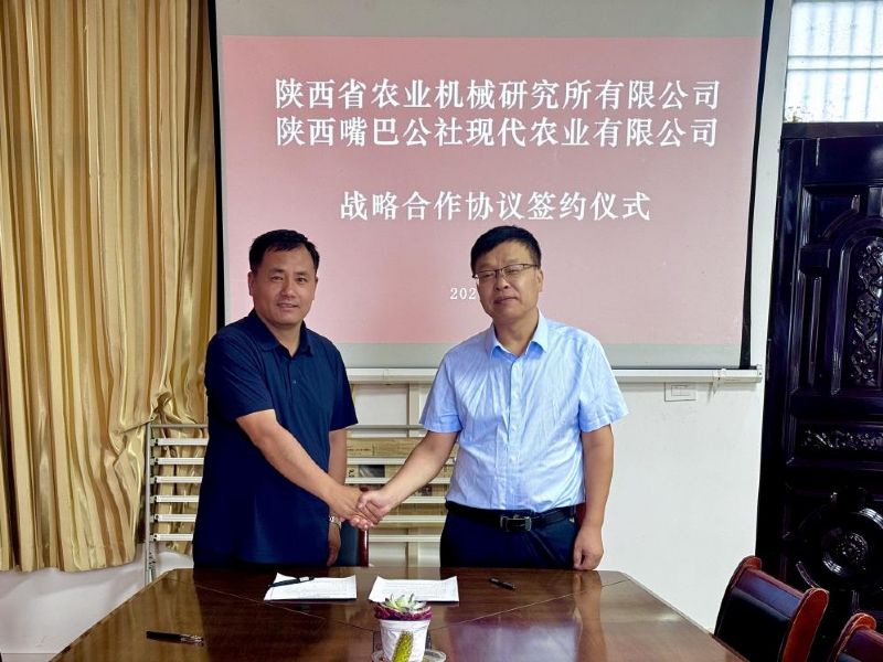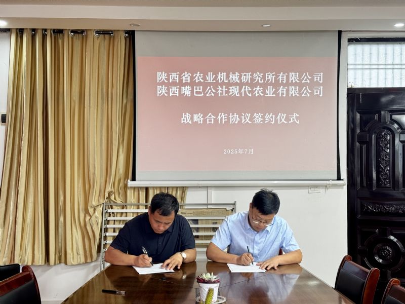 2025年7月8日,陜西省農(nóng)業(yè)機(jī)械研究所有限公司與陜西嘴巴公社現(xiàn)代農(nóng)業(yè)有限公司舉行了戰(zhàn)略合作簽約儀式。公司執(zhí)行董事、總經(jīng)理劉曉峰與陜西嘴巴公社現(xiàn)代農(nóng)業(yè)有限公司(以下簡(jiǎn)稱(chēng)“嘴巴公社”)執(zhí)行董事張恒忠共同簽署協(xié)議,標(biāo)志著雙方將緊密攜手,以科技賦能現(xiàn)代農(nóng)業(yè)發(fā)展,聚焦現(xiàn)代農(nóng)業(yè)綠色生產(chǎn)與智能裝備,開(kāi)啟深度合作新篇章。