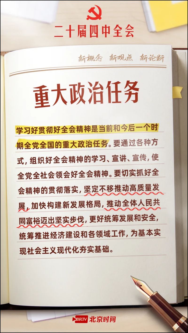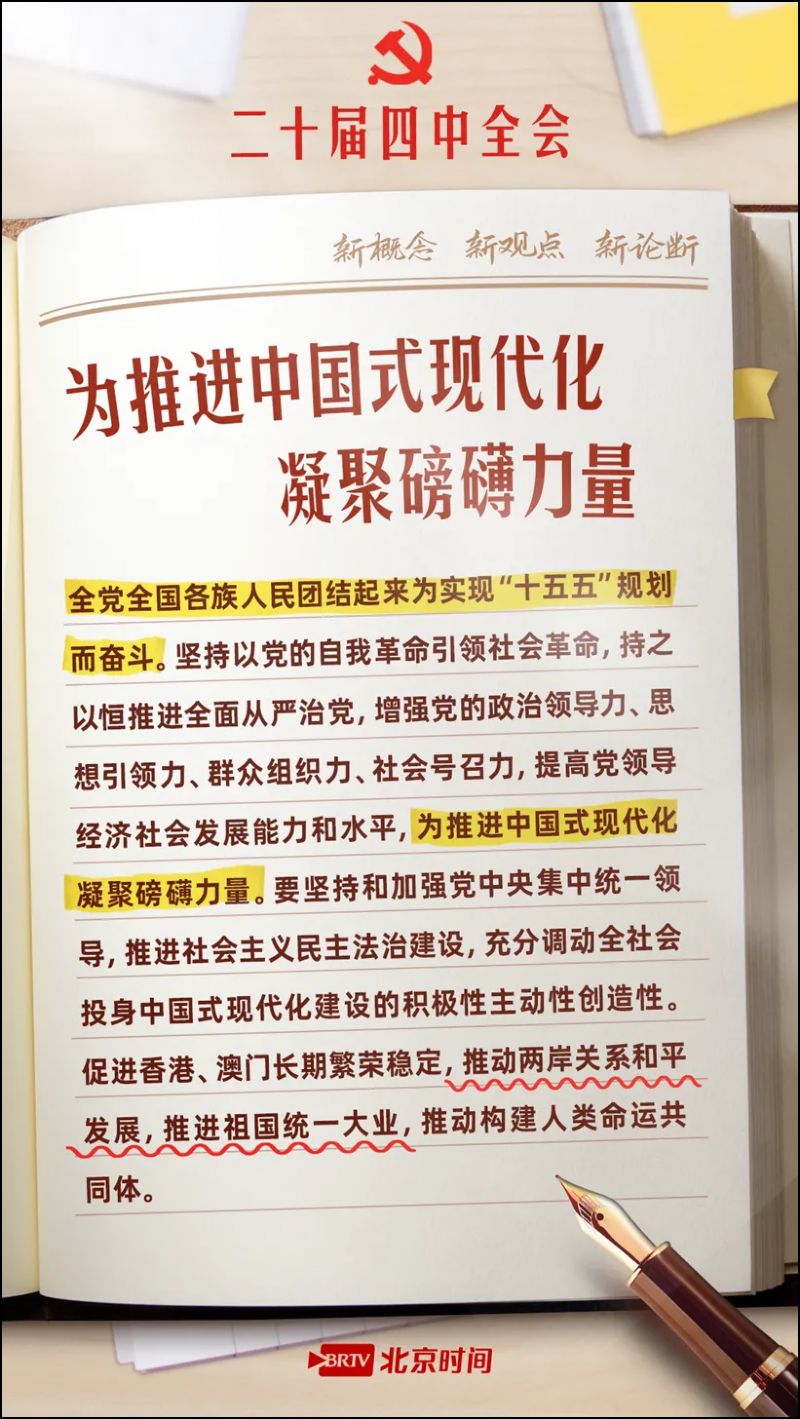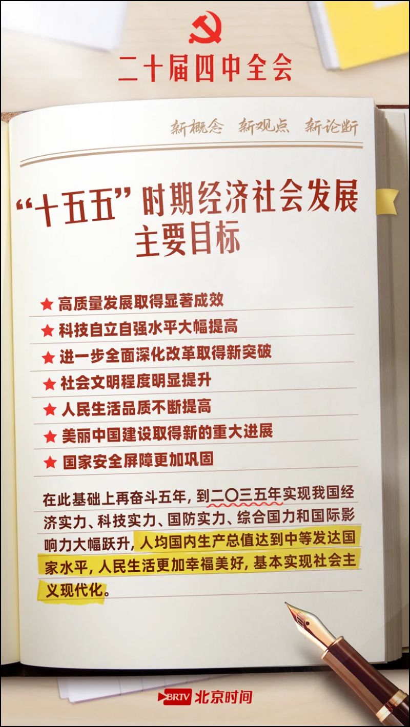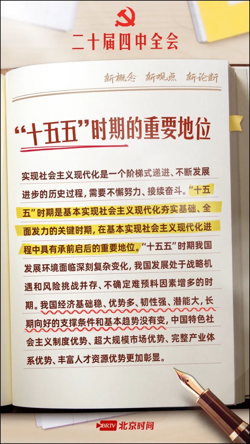 10月23日,黨的二十屆四中全會(huì)公報(bào)重磅發(fā)布,為“十五五”時(shí)期發(fā)展錨定航向,更向2035年基本實(shí)現(xiàn)社會(huì)主義現(xiàn)代化目標(biāo)吹響號(hào)角。公報(bào)中提出了哪些新概念、新觀點(diǎn)、新論斷?“十五五”時(shí)期我國(guó)經(jīng)濟(jì)社會(huì)發(fā)展有哪些主要目標(biāo)?收藏這份學(xué)習(xí)筆記,錨定目標(biāo),努力奮斗!