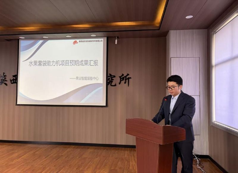 ▲牛奔馳工程師作水果紙袋套袋助力機(jī)產(chǎn)業(yè)化項(xiàng)目匯報(bào)